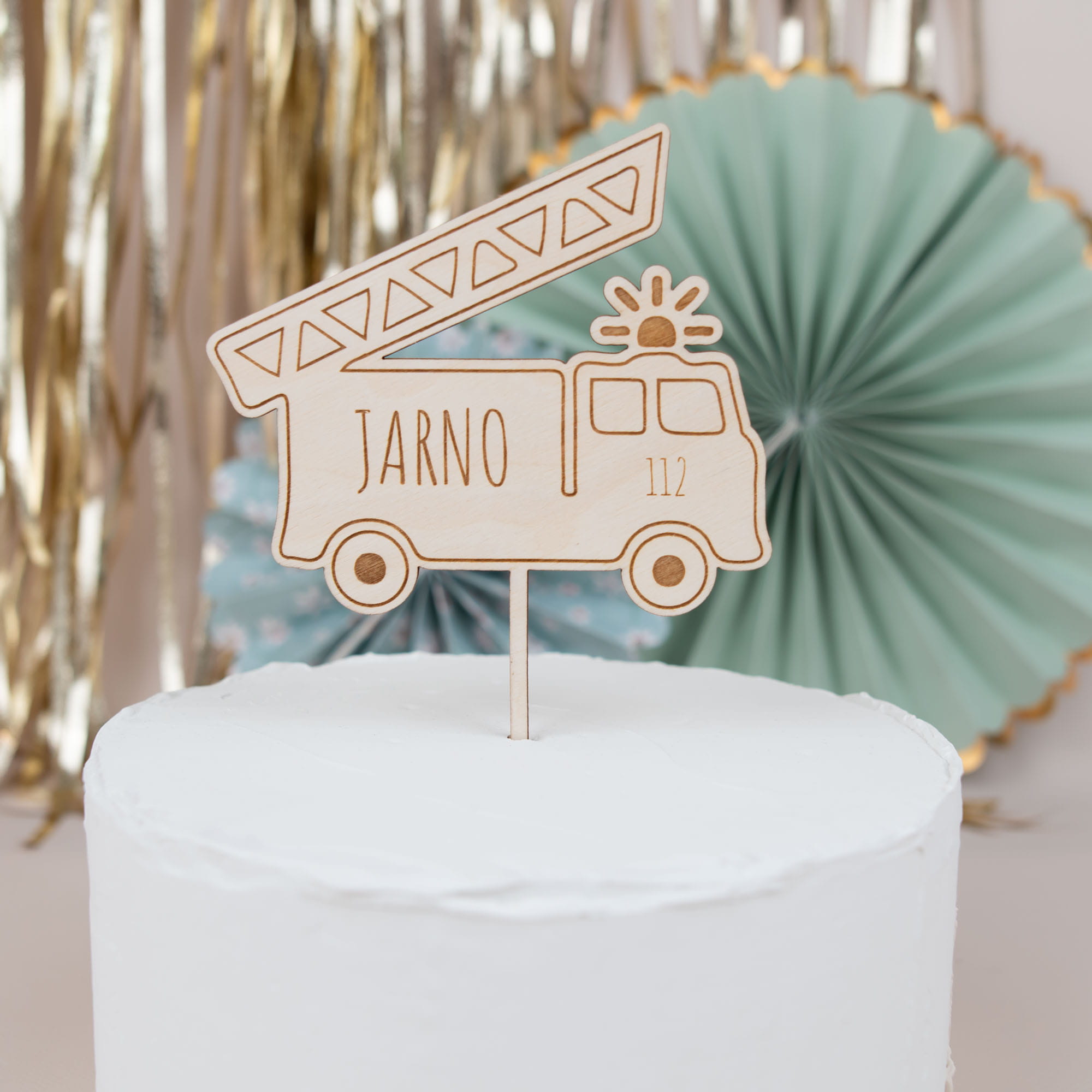Personalisierter Cake Topper Feuerwehr aus Holz – Handgefertigte Tortendeko für kleine und große Helden