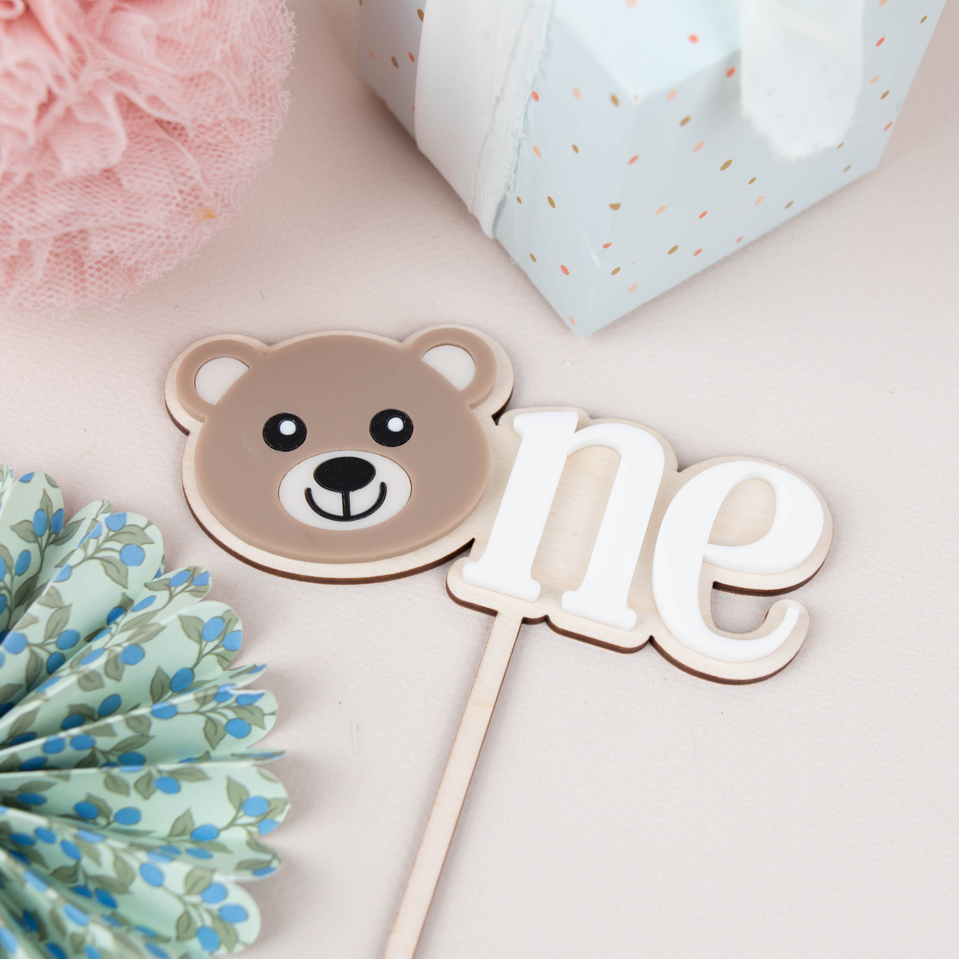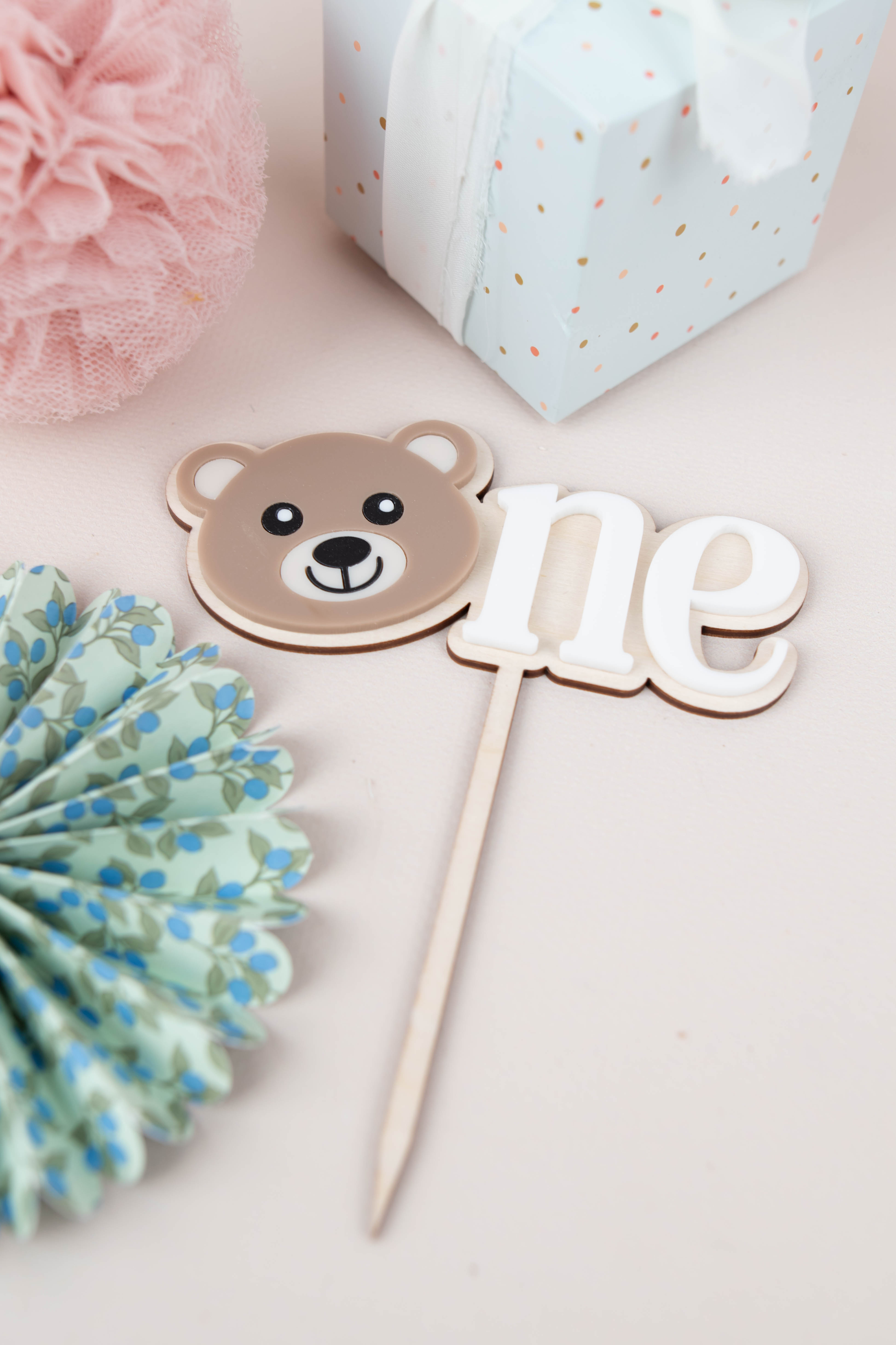Ein liebevoller Akzent für einen ganz besonderen Tag: Dieser süße Cake Topper mit Teddy Bär ist die perfekte Tortendekoration zum 1. Geburtstag. Der niedliche Bärenkopf ersetzt den Buchstaben „O“ im Wort „ONE“ und macht die Geburtstagstorte zu einem echten Hingucker.