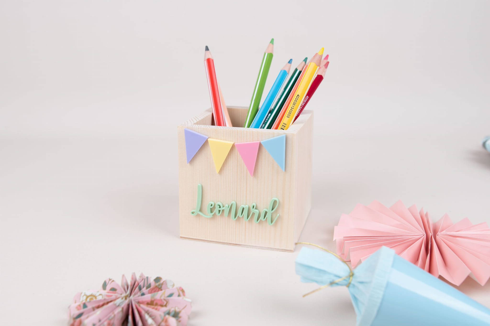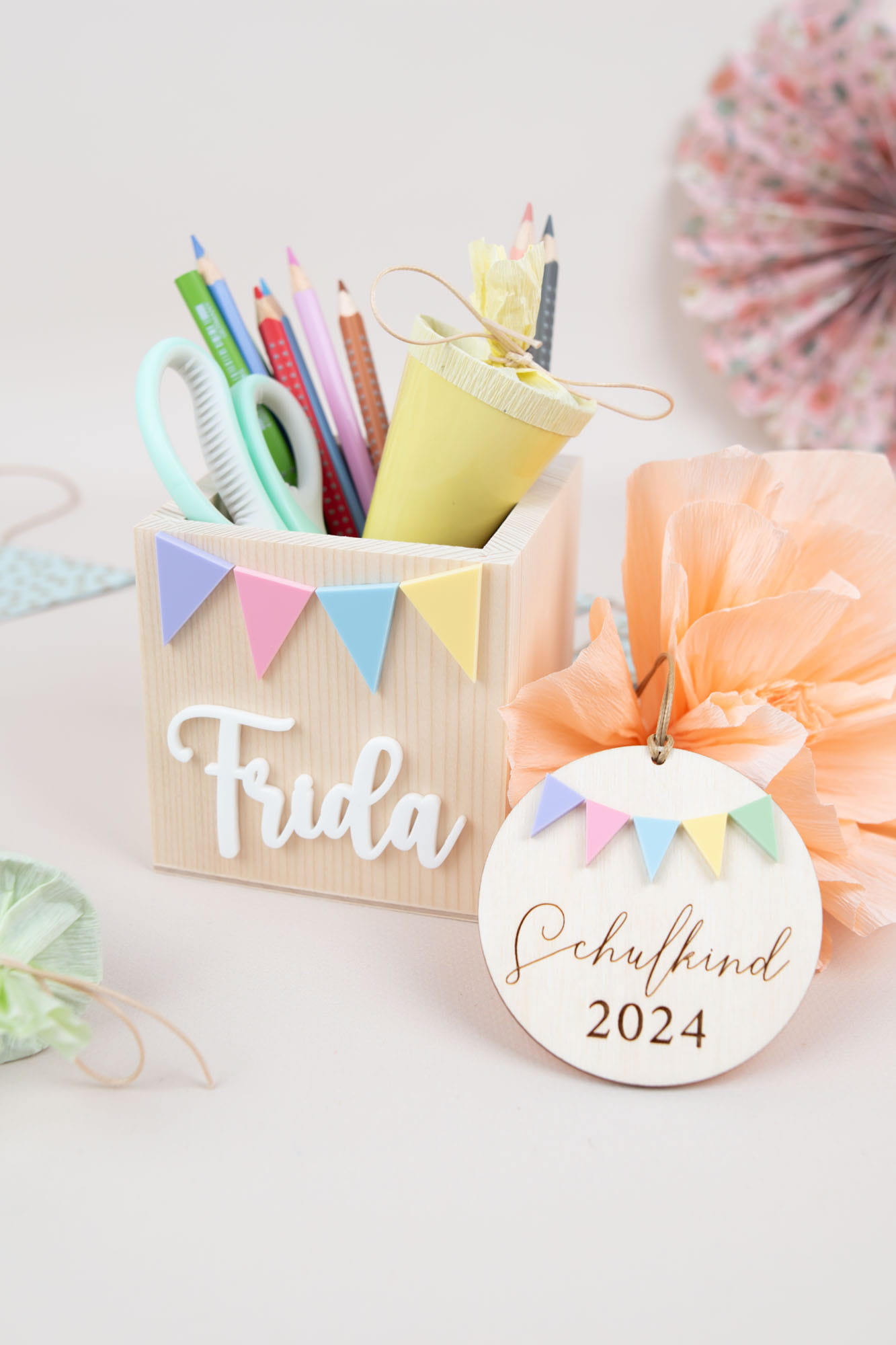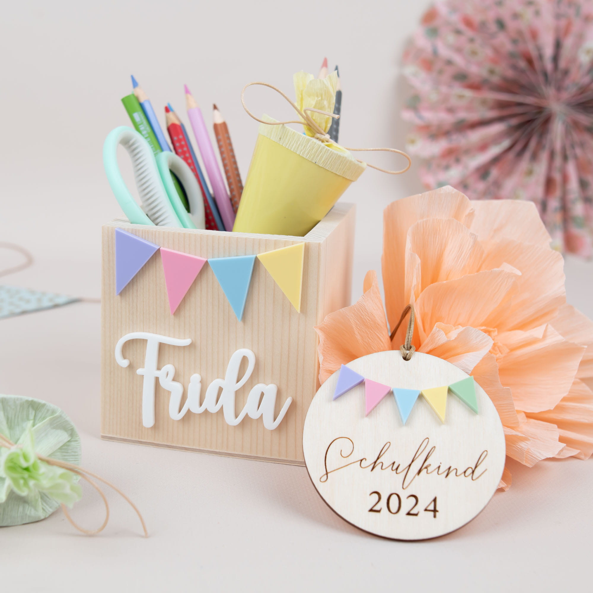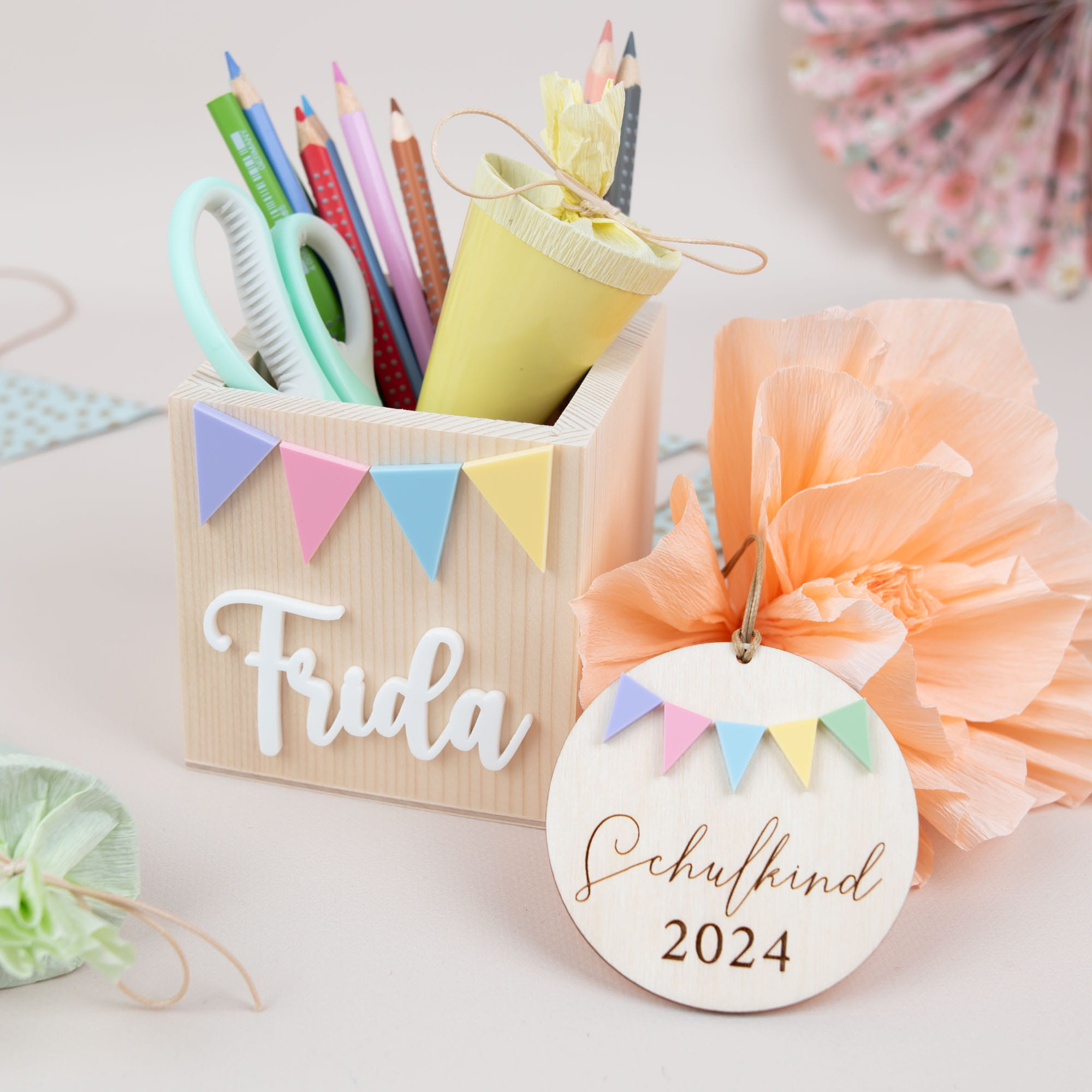 Entdeckt unser neues Set: Ein Stiftebox und ein Anhänger für die Schultüte im gleichen Design! Perfekt abgestimmt und im Set günstiger. Holt euch eure Lieblingsstücke in Pastellfarben und startet stylisch ins neue Schuljahr