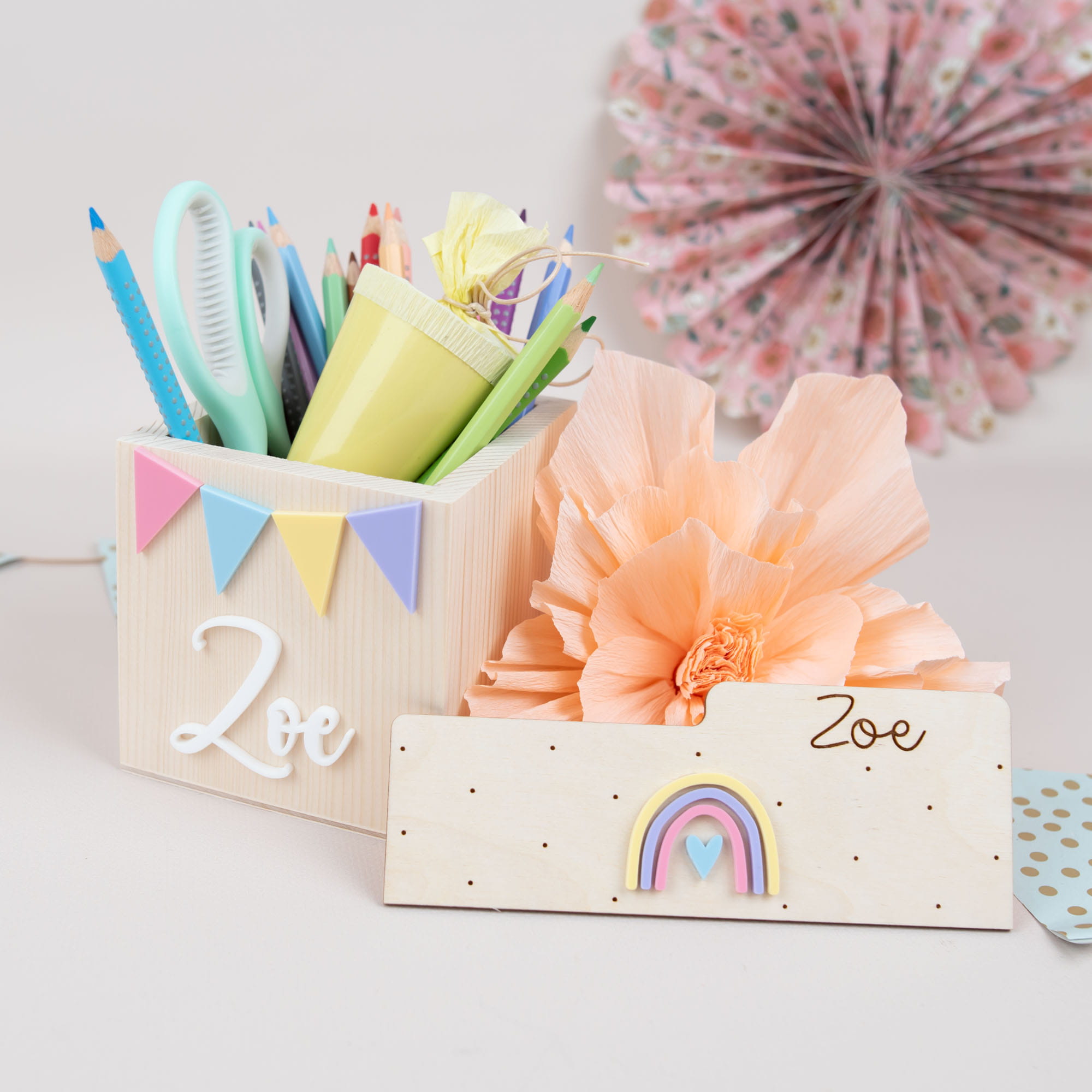 Entdeckt unser neues Set: Ein Stiftebox und Lesehilfe mit Regenbogen für die Schultüte im gleichen Design! Perfekt abgestimmt und im Set günstiger. Holt euch eure Lieblingsstücke in Pastellfarben und startet stylisch ins neue Schuljahr