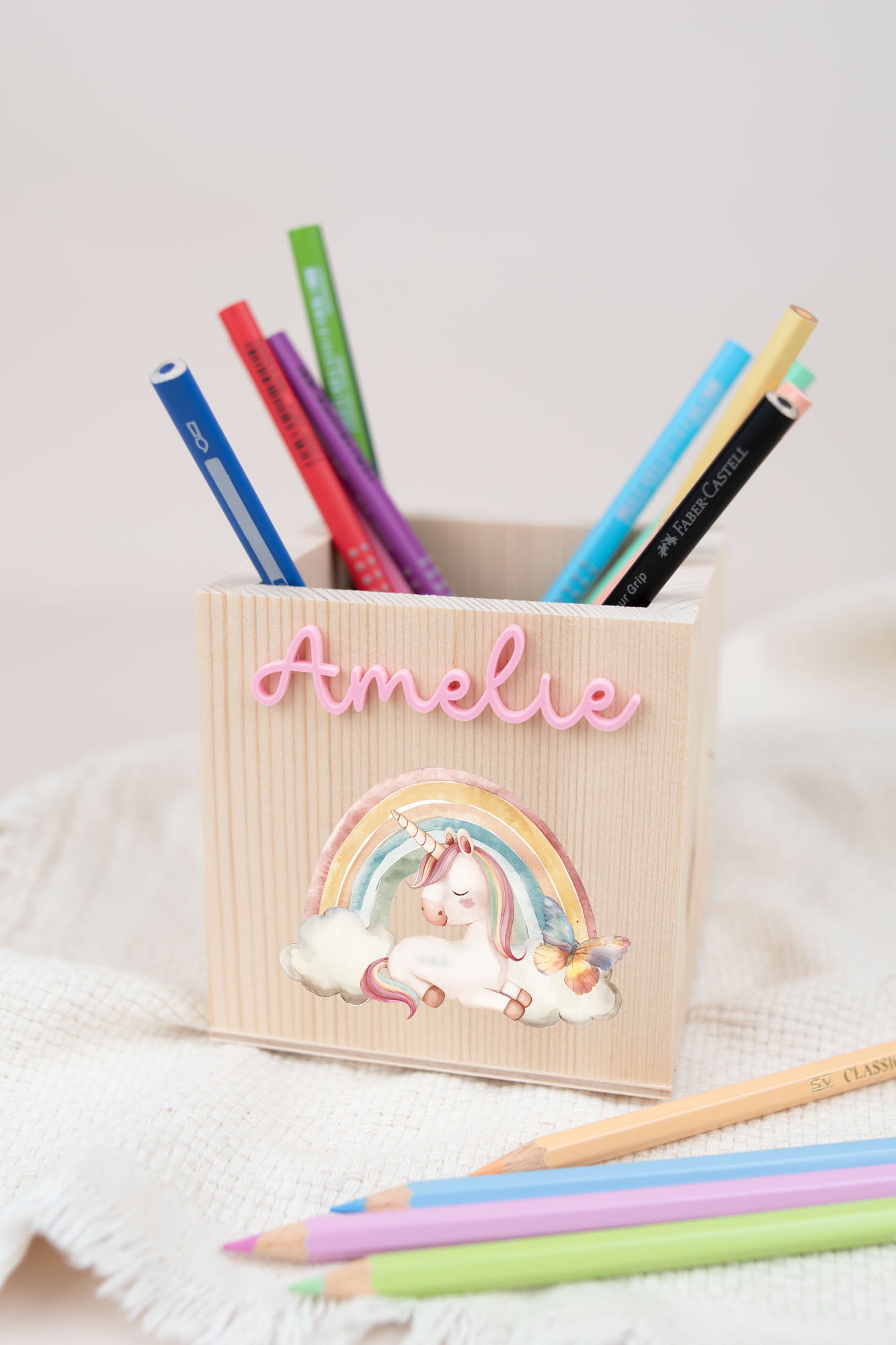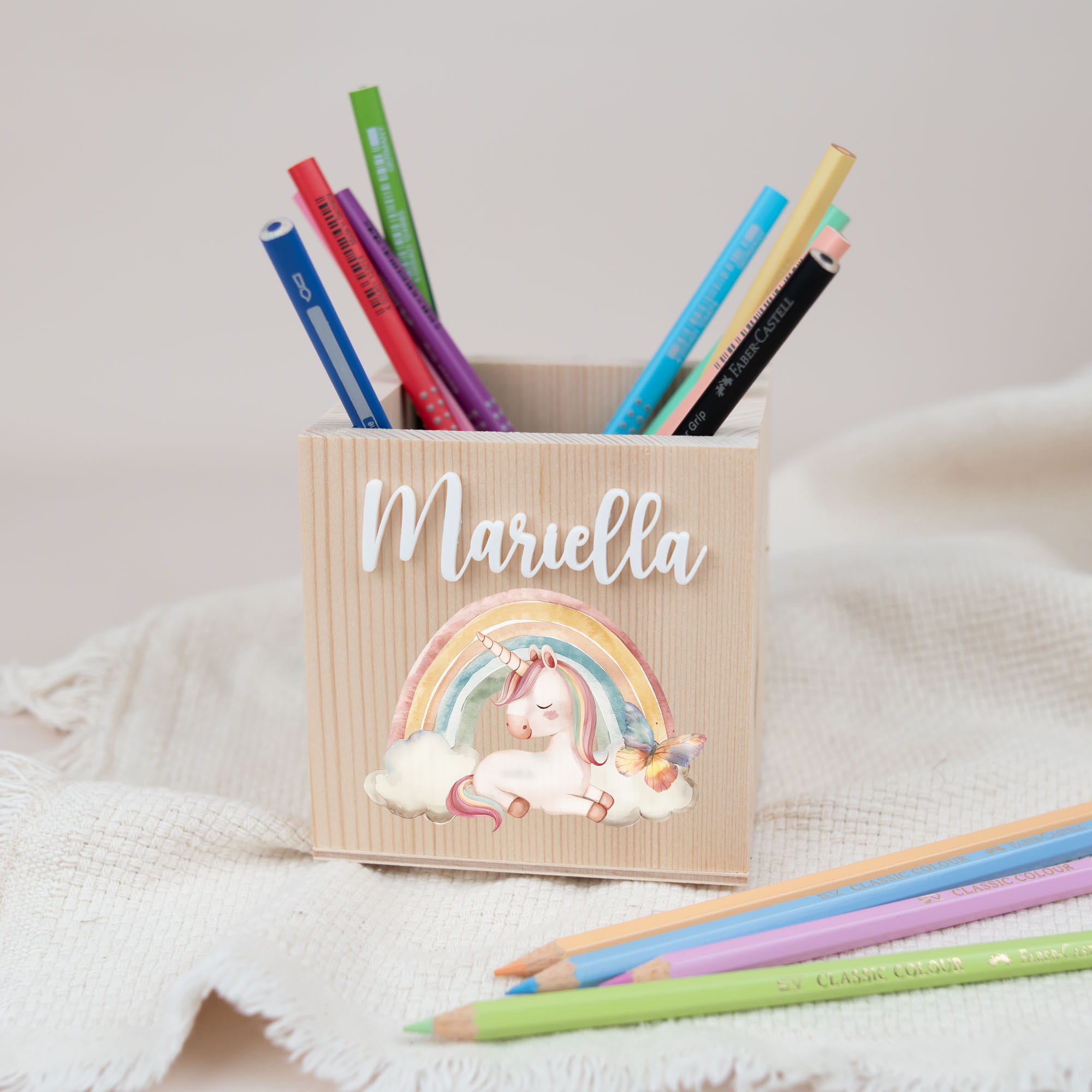 Suchst du ein personalisiertes Geschenk für ein Mädchen, das Regenbogen und Einhörner liebt?