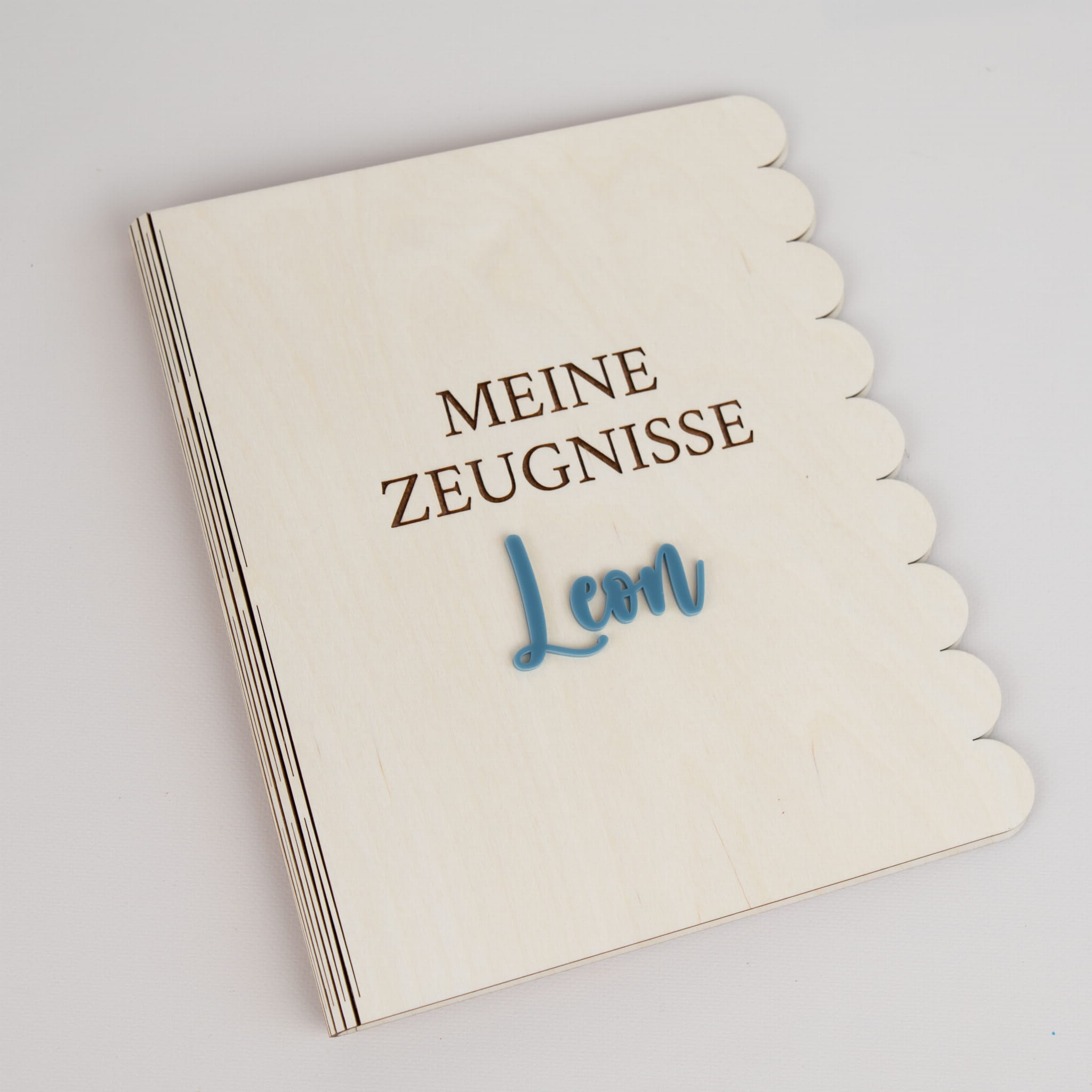 Entdecken Sie unsere einzigartige Zeugnismappe aus hochwertigem Holz, individuell gestaltet mit einem eleganten Acryl-Wunschname. Diese Zeugnismappe ist nicht nur eine praktische Aufbewahrungslösung für wichtige Dokumente, sondern auch ein unvergessliches personalisiertes Geschenk für jeden Anlass.